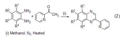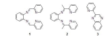 鄰苯二胺與2-吡啶甲醛反應(yīng)時(shí)得到的是n4席夫堿配體1[1],但是當(dāng)把2-吡啶甲醛換成2-乙酰基吡啶時(shí),以氯甲酸甲酯為催化劑,在異丙醇中反應(yīng)沒有得到相應(yīng)的n4席夫堿配體2,而是得到了苯并六元環(huán)產(chǎn)物即2-(2′-吡啶基)喹喔啉3[2]。