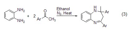改變反應(yīng)方法,在微波輻射下鄰苯二胺及其衍生物與乙酰基芳香族化合物也可以得到苯并氮雜 化合物 (式4)。