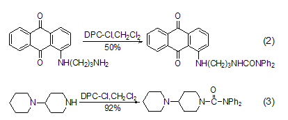 與氨基的反應  dpc-cl易與一級 (式2)[2]、二級脂肪胺 (式3)[3] 等反應[4~7]
